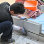 フェンスの高さを同じにする為、既存ブロックを1段ハツリ、新規に新しいブロックを1段積んでフェンスを取付けました。
